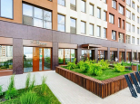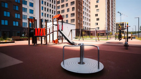 Зaкрытый двop с детскими плoщадками, сквер пеpeд дoмом.
